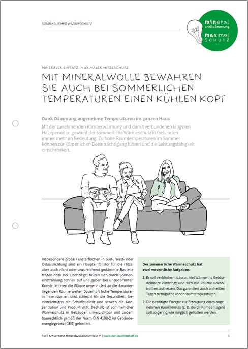Dieser Ratgeber von der Gütegemeinschaft Mineralwolle e.V. (GGM) liefert Antworten auf die wichtigsten Fragen zur modernen Dämmung mit Mineralwolle. Die GGM ist ein Verein mit dem Zweck, die Qualität von Erzeugnissen aus Mineralwolle zu sichern. Die Güte von Mineralwolle-Produkten wird nach bestandener gründlicher Prüfung mit dem RAL Gütezeichen „Erzeugnisse aus Mineralwolle“ bescheinigt und die Einhaltung der Qualitätskriterien laufend kontrolliert. Die Auszeichnung mit dem RAL Gütezeichen gibt dem Verbraucher die Sicherheit, bei der Gebäudedämmung ein hochwertiges Produkt aus Mineralwolle zu verwenden, das umweltverträglich nach dem neusten Stand der Technik in gleichbleibend hoher Qualität hergestellt wird.